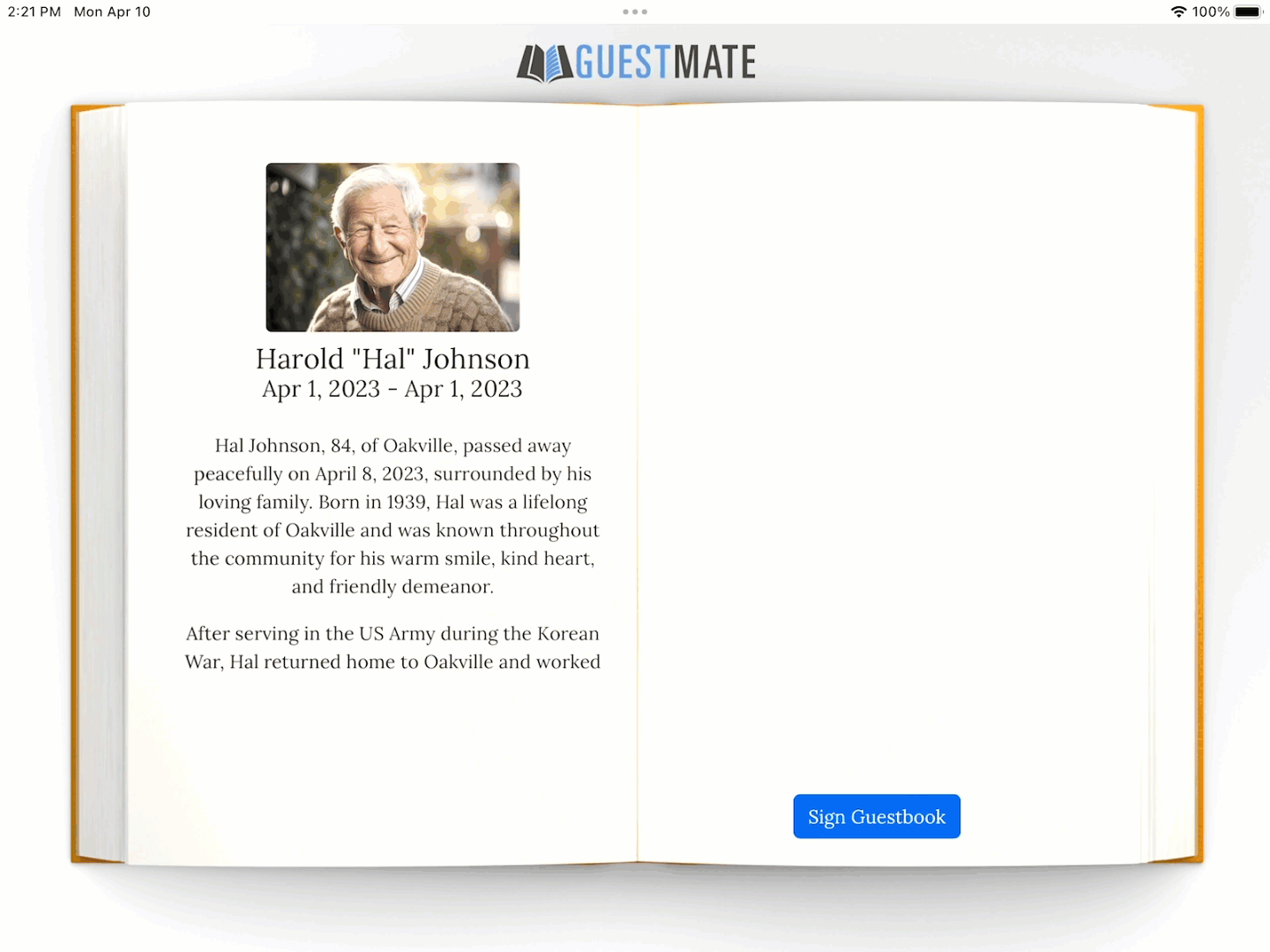Guestmate is a modern electronic funeral home guestbook that aims to help visitors and families make a difficult moment easier.